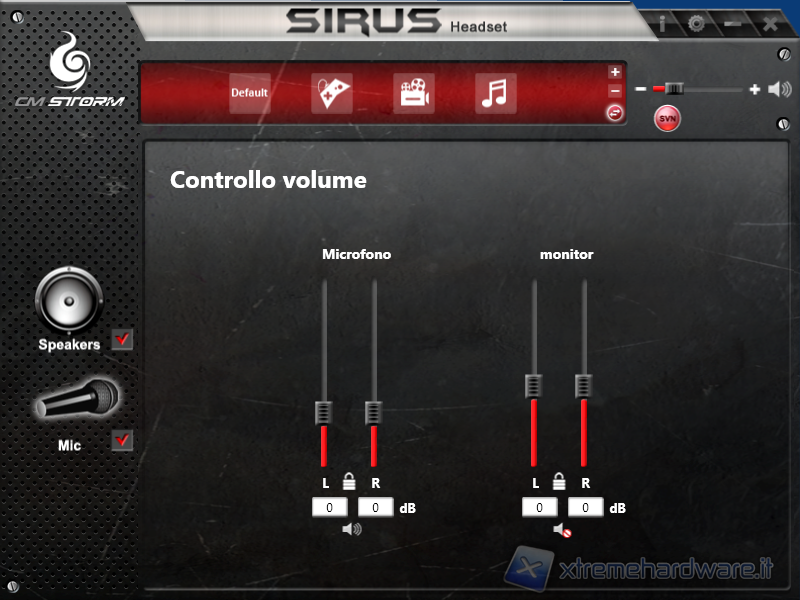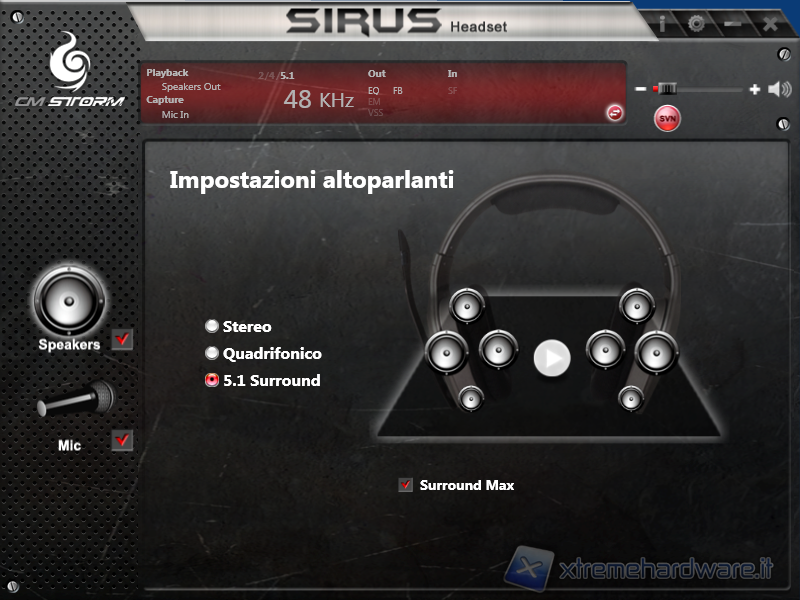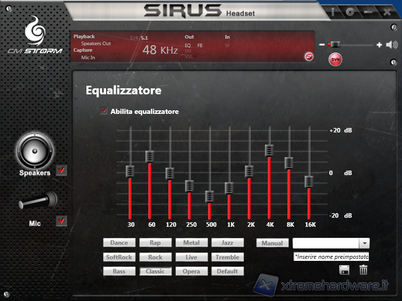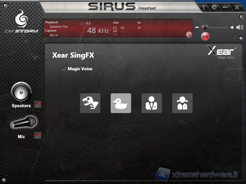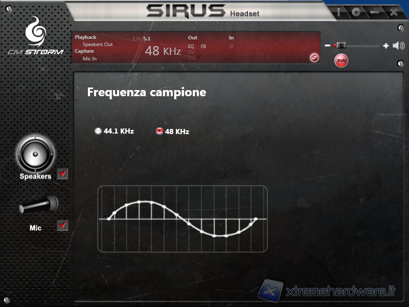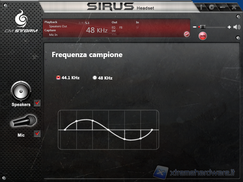 Nel CD presente nella confezione è contenuto Sirus Audio Center, una semplice ma potente suite che permette di regolare i parametri del microfono e delle cuffie.