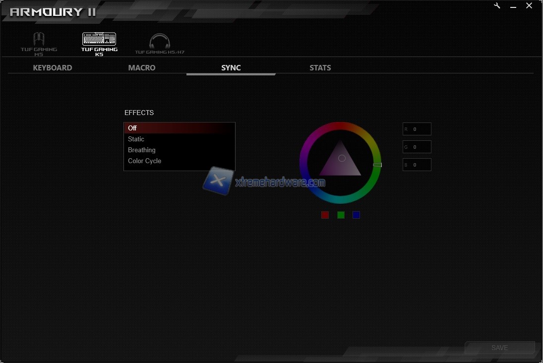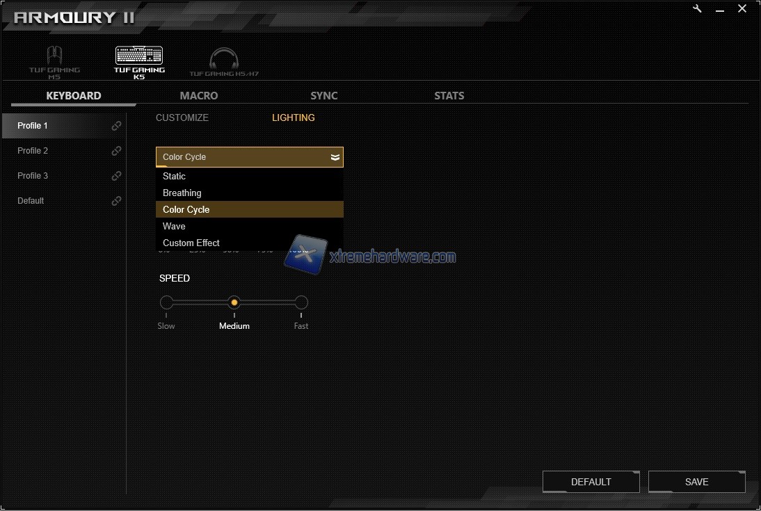 A seguire vi lasciamo tutti gli screenshots delle impostazioni e menu che avremo a disposizione una volta collegato la tastiera TUF Gaming K5. Ormai conosciamo e conoscerete bene come è strutturato il software unificato di ASUS ROG Armoury II.